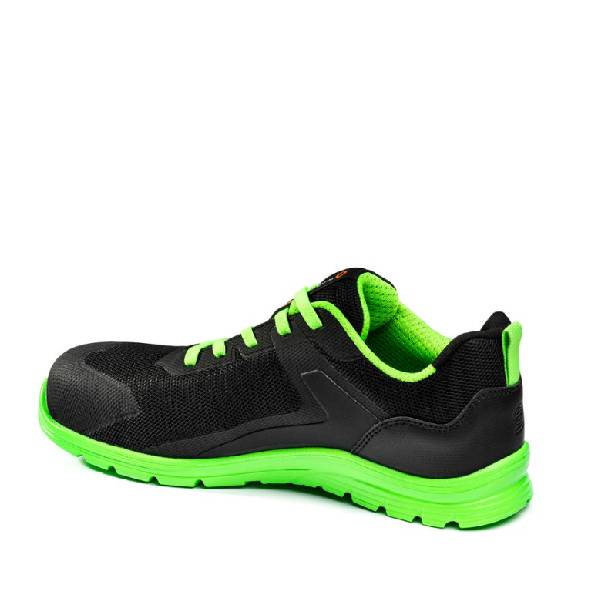 Calzado de seguridad de diseño deportivo y ultra transpirable, ideal para jornadas intensas gracias a su tejido microperforado y refuerzos 3D HF resistentes a la abrasión. Incluye un segundo par de cordones en color de contraste para personalizar tu estilo.
